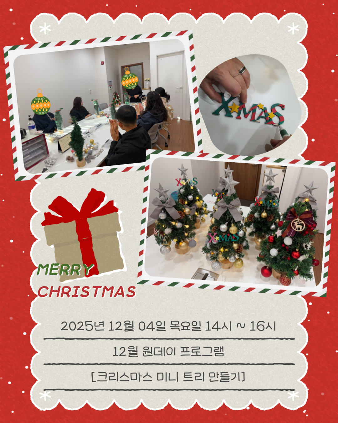 2025년 12월 원데이프로그램 \"크리스마스 미니 트리 만들기\" 진행