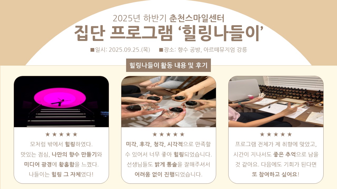 2025년 하반기 춘천스마일센터 집단 프로그램 \'힐링나들이\'