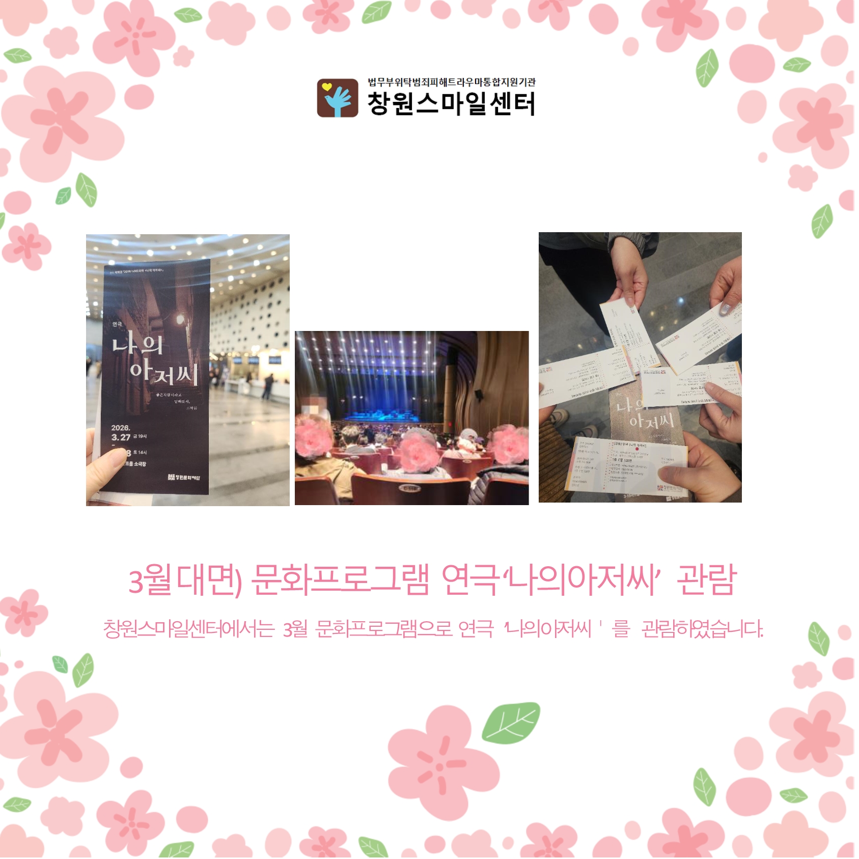 [프로그램] 2026년 3월 대면문화프로그램_연극\'나의아저씨\' 관람