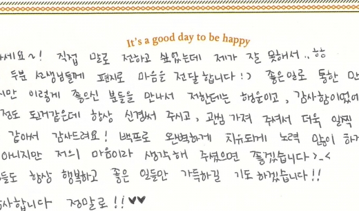 내담자분들이 겪고 있는 어제와 오늘의 아픔이 조금이라도 줄어들 내일을 위해, 저희 센터의 모든 직원들은 언제나 최선을 다하겠습니다.